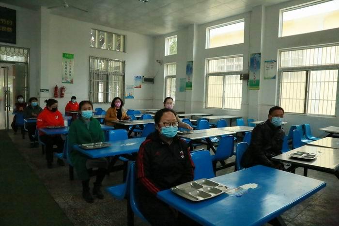 在演练现场,参加模拟演练的教师在校门口有秩序进行体温检测、消毒、填写《返校申报核查书》和《承诺书》,审核复核返校条件者方可入校。在校期间,模拟了学生每天定时早、中、晚检测,教室定时消毒通风,午时就餐、外出活动、触摸公物后,均要排队洗手,老师对学生的健康状况要做到及时监测,如有学生出现发热咳嗽等症状,班主任第一时间将情况上报至学校应急处置部门,并采取相应的应急预案,做到流程清晰,组织有序。疫情期间,学校实行错时就餐和错时放学,避免人多拥堵,产生交叉感染。放学后,学校总务处安排人员将对校园内公共区域进行彻底消杀,确保校园环境的卫生安全。