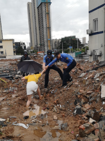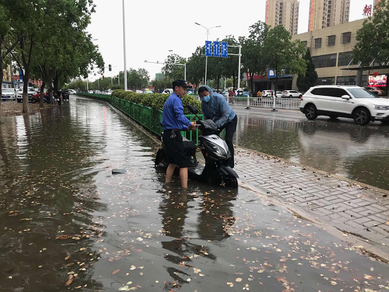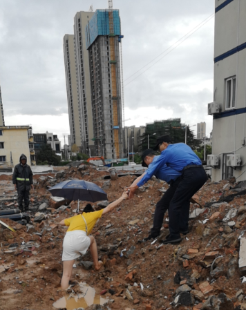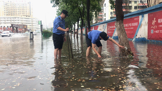 6月12日,市区内风雨交加,突如其来的大雨导致多处街路两侧牌匾、户外广告牌、树枝树干等受损脱落,不仅严重影响市容观瞻,也产生了很大的安全隐患,威胁道路行车及行人。