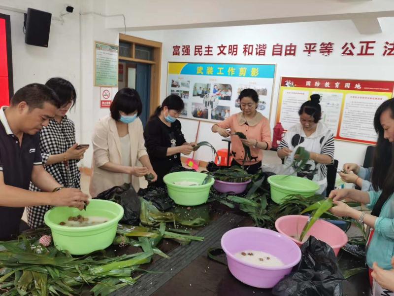 在热烈地掌声中,孙丽丽走下朗诵舞台,加入到“巧手包粽子”主力军。