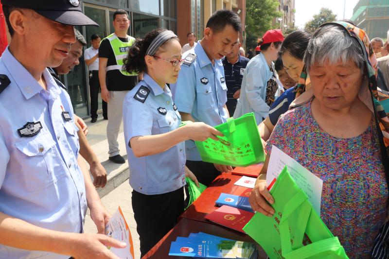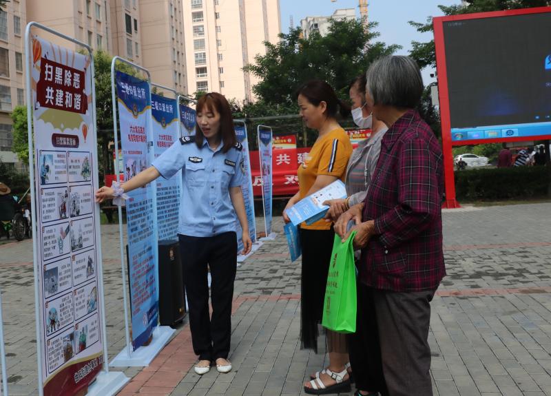 活动中,派出所民警向居民们展示了新型毒品的种类并通过对身边典型案例的阐释警示居民要远离毒品。司法所干警一边通过宣传展板向居民普及扫黑除恶相关法律知识,提示居民要远离黑恶势力,在发现涉黑涉恶违法犯罪线索时要及时向相关部门反应;另一方面通过发放宣传折页、宣传袋、法律小册子的方式向居民宣传《宪法》《法律援助条例》等法律知识,提升居民对法律援助等惠民政策的知晓率以及对政法工作的满意度。