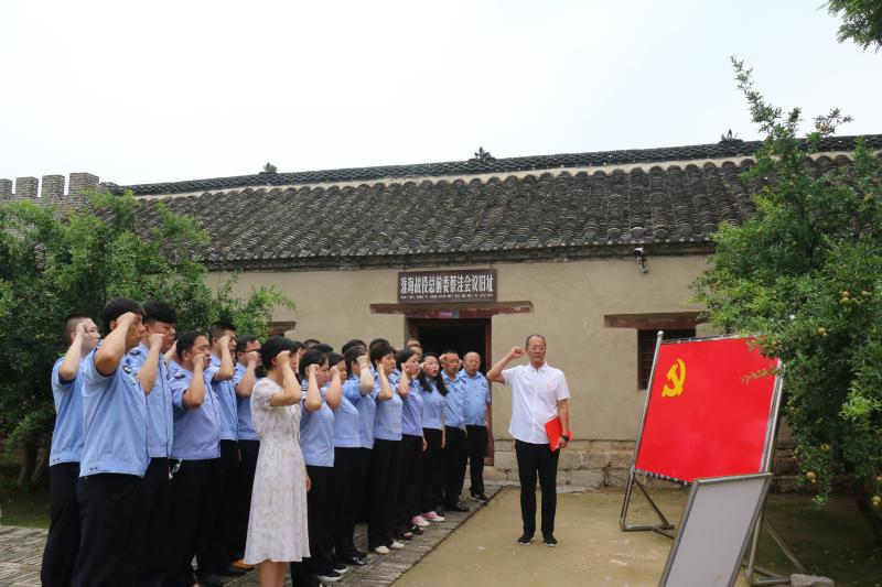 活动中,全体党员首先参观了杜集区革命烈士陵园,在陵园负责人的引领解说下,更加深刻的感受到革命先烈们的大无畏,有年纪轻轻的少年郎、有一家三父子、更有不知姓名的无名战士等等,一寸山河一寸血,大家怀着无比沉重的心情细细聆听,不知不觉间面目肃穆,沉默中感悟先烈们的英勇事迹,激发党员的荣誉感、责任感。随后,来到杜集区小朱庄战斗烈士陵园,纪念碑上“革命烈士 永垂不朽”八个金色的大字熠熠生辉,雕梁壁画栩栩如生,讲述着一个个生动的故事。最后,来到萧县蔡洼红色教育中心,在讲解员的带领下,大家共同参观了淮海战役总前委旧址。通过参观和讲解,党员们回顾了中国共产党是如何在极度艰难的条件下以少胜多,最终取得淮海战役的胜利。一件件实物、一幅幅图片、一个个场景,再现了那场会师淮海、决战中原的大战,让大家再一次感受到了革命胜利的来之不易;随后,在淮海战役总前委蔡洼会议旧址门前合影,全体党员面向党旗,举起右手,庄严宣誓,重温入党时的神圣与庄严。