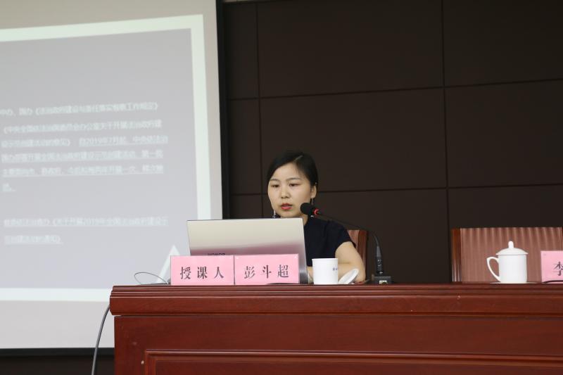 培训会上,彭斗超介绍了开展法治政府建设示范创建的背景,并从网上申报、第三方测评、实地核查等几个方面对法治政府建设示范创建相关工作内容进行了讲解与培训。