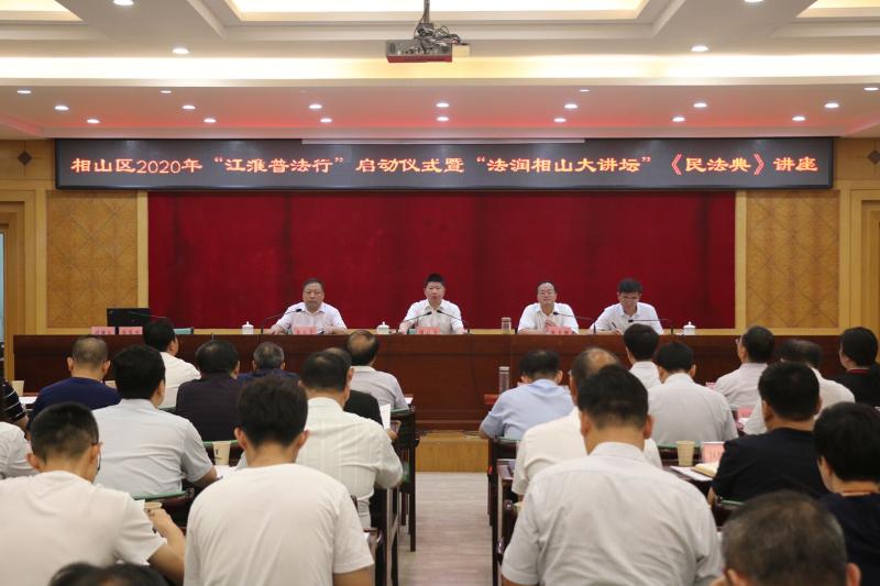 7月24日上午,相山区举行2020年“江淮普法行”启动仪式暨“法润相山大讲坛”《民法典》讲座。区四大班子成员,区直各单位负责同志,各镇街、开发区党政主要负责同志参加活动。