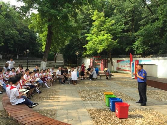 8月4日,相山区西街道办事处联合区城市管理局、市第二实验小学走进相山公园开放式党校开展“倡导绿色生活 推进垃圾分类”主题宣传活动。