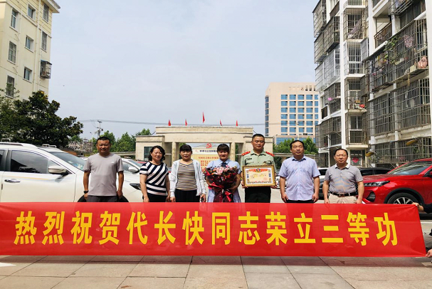为增强军人的荣誉感和家属的自豪感,唤起全社会对军人的尊重,营造“一人当兵,全家光荣”的浓厚社会氛围,8月10日上午,区退役军人事务局联合任圩街道办事处负责同志到我区代庄社区荣立三等功的现役军人代长快家中,送去喜报和慰问金,并向其全家致以问候和祝福。