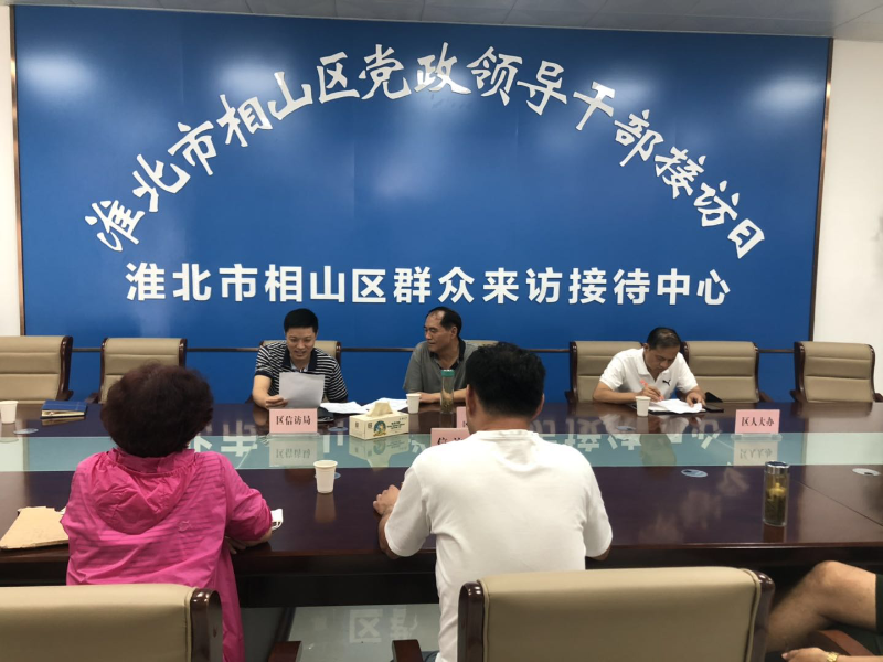 8月4日上午,相山区人大常委会党组书记、主任李清平在区群众来访接待中心接待信访人1批5人次,涉及房屋征收补偿事项,区人大办、区信访局陪同接访。