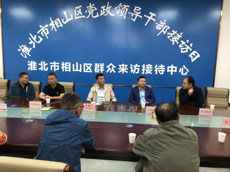 2020年10月9日上午,相山区区政府副区长李拥军在区群众来访接待中心约访,接待信访人1批5人次,信访诉求涉及居民回迁安置问题。区信访局、区住建局、任圩街道、开发商陪同接访。