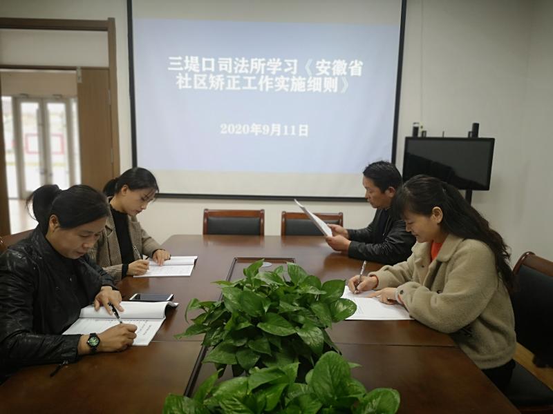 《安徽省社区矫正工作实施细则》的施行进一步推进和规范社区矫正工作,三堤口司法所工作人员认真学习并贯彻落实,依法对社区矫正对象开展监督管理、教育帮扶活动,促进矫正对象顺利融入社会,预防和减少犯罪,维护社会和谐稳定。