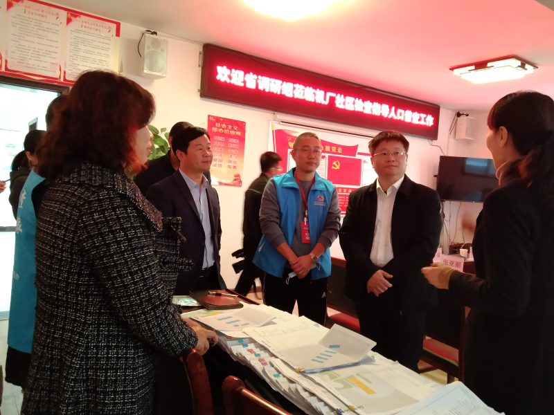 2020年11月11日下午,省调研组组长、省数据资源管理局党组成员、副局长钱海一行到淮北市相山区东街道机厂社区调研指导人口普查登记工作。淮北市统计局党组书记、局长邵青,副局长聂泽语,相山区委常委、常务副区长赵华,相山区统计局分管同志等陪同调研。