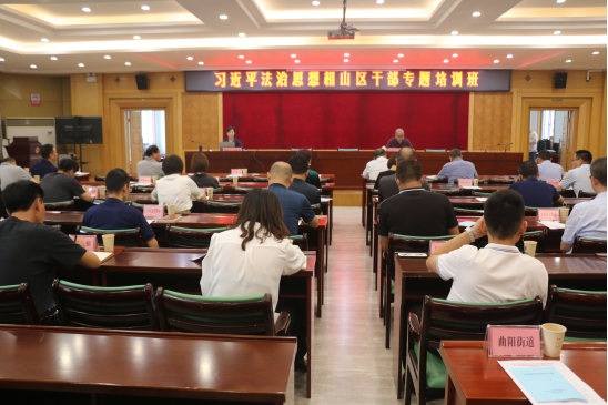 2021年9月9日上午,中共相山区委依法治区委员会办公室举办习近平法治思想相山区干部专题培训,邀请市委党校法学与管理教研室主任费蕙蓉教授围绕习近平法治思想做专题培训,区政府副区长郑翔主持会议并讲话,区领导及区直各单位、各镇街、开发区主要负责同志共计50余人参加。