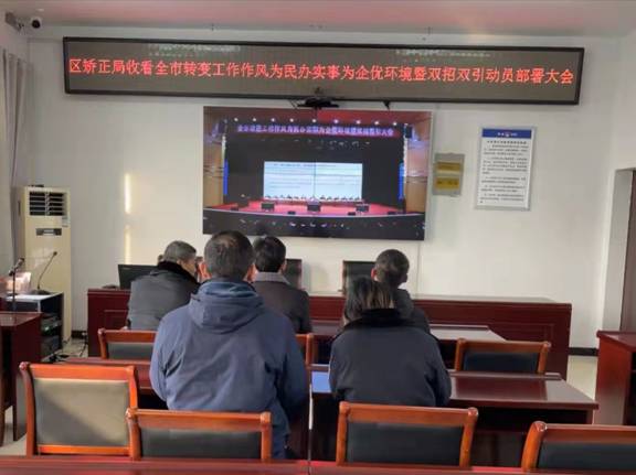 2月8日上午,相山区社区矫正管理局干警,认真收听收看了淮北市改进工作作风为民办实事为企优环境暨双招双引大会新闻报道。