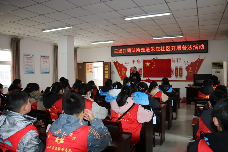 2月11日上午,三堤口司法所联合朱庄社区在社区三楼会议室给辖区居民和中学生开展法律知识讲座。