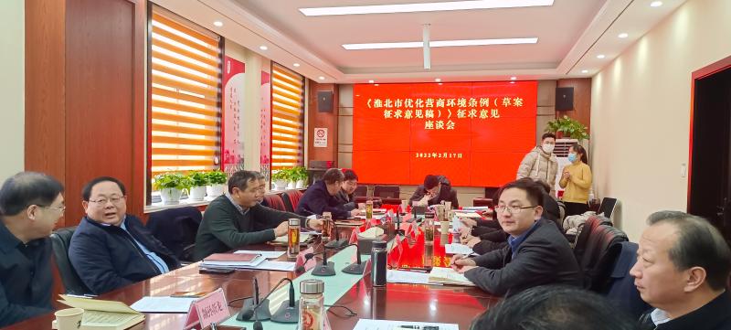 2022年2月17日下午,在相山区人大常委会一楼会议室召开《淮北市优化营商环境条例(草案征求意见稿)》征求意见座谈会。市人大常委会金文副主任一行来相山听取相山区相关单位、企业对市优化营商环境立法的意见。