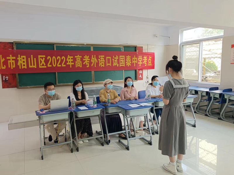 5月21日,相山区2022年高考外语口试在国泰中学开考,来自全区民办高中、社会报名点报名的212名考生参加口语考试。