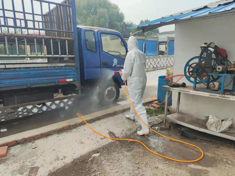 为贯彻落实省、市重大动物疫病防控工作文件精神,加快推进我区秋季重大动物疫病防控等重点工作进度,10月15日根据秋季动物发病发生特点和工作安排,相山区动物卫生监督所组织开展“大清洗、大消毒”专项行动,主要针对养殖场、屠宰场、畜禽运输车辆等,开展彻底清洗消毒,消毒方法选择含氯类,采用室内空气喷雾消毒。二是地面、墙面溶液喷雾。三是物体表面以及围栏等可喷雾、擦拭或浸泡消毒。四是工作服等纺织品可煮沸消毒30分钟,消毒剂浸泡熏蒸消毒。五是畜禽运输车辆喷洒或擦拭消毒。消毒范围覆盖渠沟镇、规模养殖场、养殖大户、屠宰场、经营场所。使用与发放消毒剂60余箱,出动技术指导人员5人,村级防疫员12人,消毒面积达120000平方米,畜禽运输车辆20余台次。确保辖区内不发生重大动物疫情。