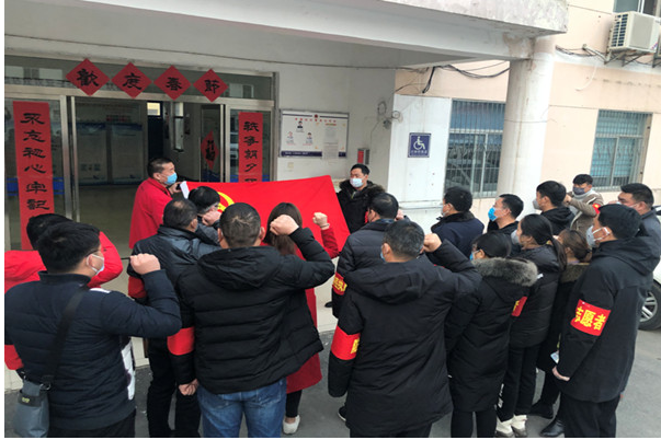 “我志愿加入中国共产党,拥护党的纲领,履行党员义务,执行党的决定……”,1月28日下午,李楼社区疫情防控临时党支部19名党员面向党旗庄严宣誓,标志着南黎街道李楼社区疫情防控临时党支部成立。一个支部就是一个堡垒,一名党员就是一面旗帜。