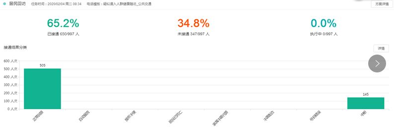 “智能语音外呼助手”自2月3日开始投入使用,截至2月6日,在相山区南黎街道已累计服务3万人次,其中电话通知1.5万人次,短信通知1.5万人次,真正成为了南黎街道抗击疫情的得力帮手。