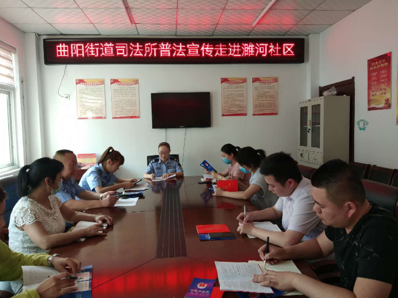为了提高广大群众的法律意识和法制素质,营造和谐文明的社区,推进民主法治社区建设。确保社区两会期间维稳安全,5月27日下午,曲阳街道司法所普法宣传走进濉河社区。