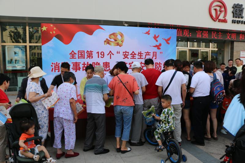 今年6月份是全国第19个“安全生产月”,主题是“消除事故隐患,筑牢安全防线”。在宣传活动现场,通过大屏幕播放安全警示片、展板展示、悬挂横幅、发放资料、现场咨询等方式,向群众宣传安全生产法律法规、生产方针政策,普及消防安全、防灾减灾救灾等知识,面对面解答群众关心的安全生产问题,并开展了“我行动 我参与 我安全”群众签名活动。