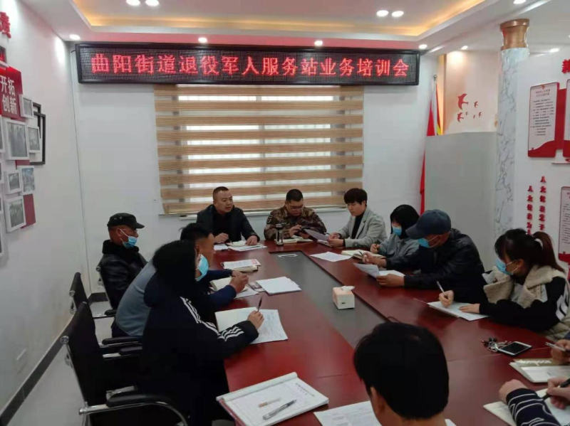近日,曲阳街道召开退役军人业务培训班,会议由曲阳街道武装部部长王玉亨主持,各社区退役军人服务站工作人员参加。