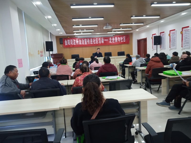 为强化人民群众的法治意识,构建和谐发展的社会格局,11月12日,渠沟社区联合曲阳街道司法所在社区会议室开展法治宣传进社区活动,为群众普及信访法律知识,进一步增强群众依法维权、依法合理表达诉求的法治意识。