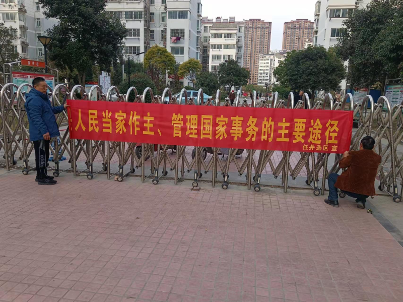 活动期间,利用电子显示屏、悬挂换届选举的条幅,向广大居民宣传换届选举工作,确保本届换届选举工作顺利进行。工作人员还向百姓详细阐述了换届选举的有关问题,是居民们知晓本次换届选举的重要意义,激发居民关注选举工作、依法行使民主权利。