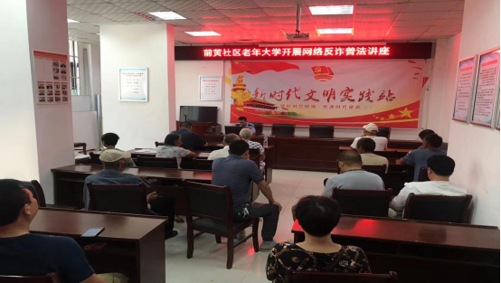 2022年8月4日,曲阳街道前黄社区邀请辖区内派出所民警周涛开展“网络反诈普法“的老年人防诈骗知识讲座。