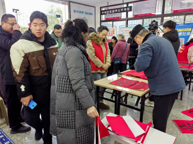 金蛇辞旧春华启,龙腾新春气象新。为弘扬中华优秀传统文化,营造喜庆祥和的节日氛围,1月15日,中城社区邀请书画班老师在社区党群服务中心开展“迎新纳福写春联 翰墨飘香送祝福”赠春联公益活动,为职工、群众送上新春祝福。