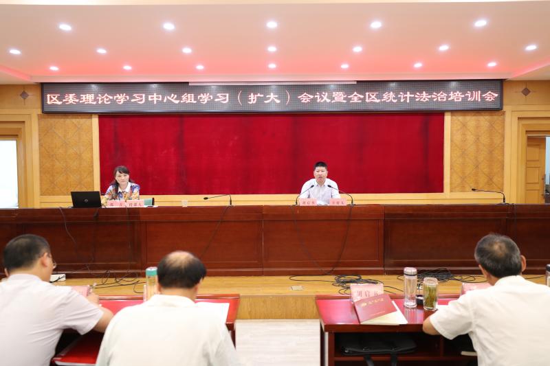 7月9日下午,区委举办理论学习中心组学习(扩大)会议暨全区统计法治培训会,市统计局党组书记、局长邵青应邀作题为《统计法律法规和统计业务知识》的专题报告。区委书记胡启书主持会议并讲话。区委理论学习中心组成员、区直各单位、各镇街、开发区党政主要负责同志及凤凰山实业主要负责人80余人参加会议。