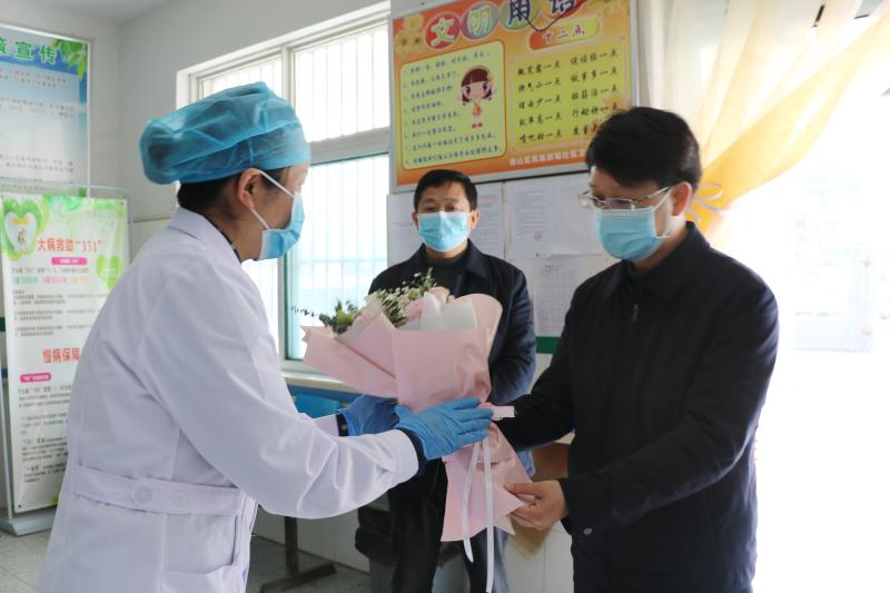 3月8日上午,区领导胡启书、朱龙、侯孝东、黄培培代表区委、区政府分别到相山区两处集中隔离观察点、火车站检测卡点、凤凰新城社区卫生服务中心看望奋战在抗疫一线的女医务工作者,为他们送去节日的问候和祝福。