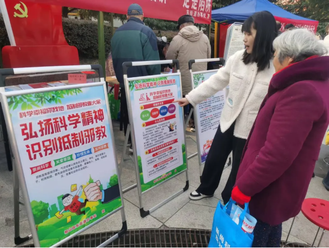 在元旦来临之际,为进一步提升辖区居民的识邪、防邪、拒邪的能力,营造崇尚科学、抵制邪教的浓厚氛围,近日,相山区东街道结合“来赶集吧”活动,开展反邪教警示教育宣传。