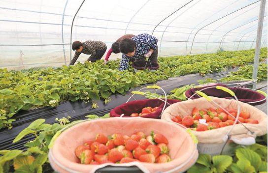 近日,相山区渠沟镇瓦房村草莓种植基地一片忙碌,农户在大棚内采摘草莓,并及时分拣、打包、发货,供应市场。近年来,渠沟镇政府顺应市场行情,适时调整产业结构,大力发展设施农业,助力农民增收致富。