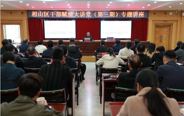 为夯实统计工作基础,进一步提升干部经济分析研判能力,11月12日上午,相山区举办干部赋能大讲堂(第三期)专题讲座。会议特邀市统计局二级调研员王建授课。区四大班子领导,区直主要经济部门,各镇街、开发区,区属国有企业等90余人参加。