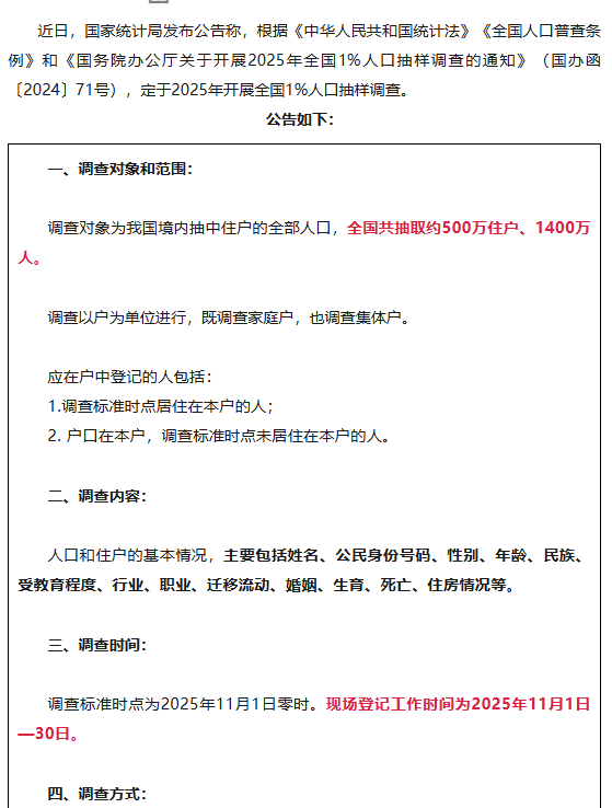 11月1日至30日,入户调查来了!