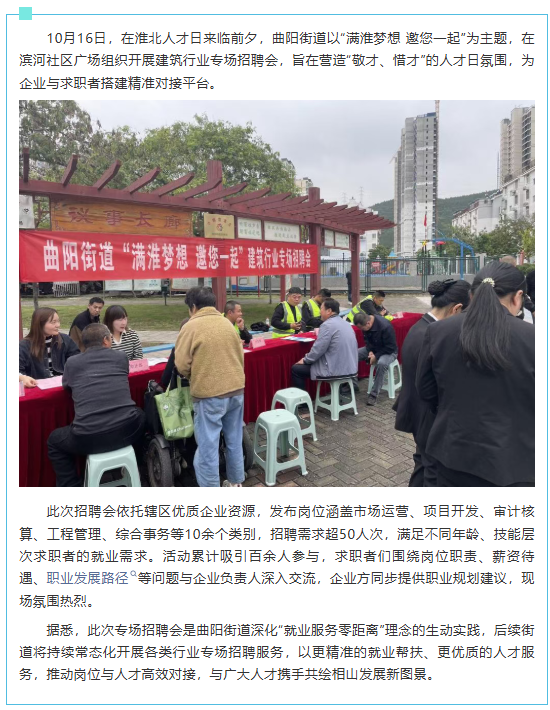 “满淮梦想 邀您一起”——曲阳街道组织开展建筑行业专场招聘会