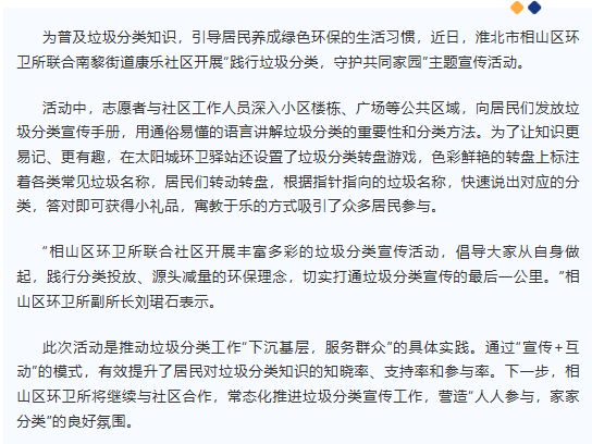 相山区:绿色理念“送到家” 垃圾分类我先行