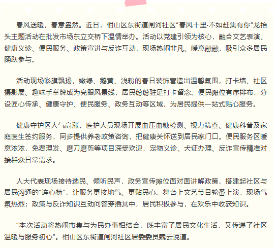 东街道龙抬头主题活动热闹启幕:春风市集暖民心 邻里欢聚享温情