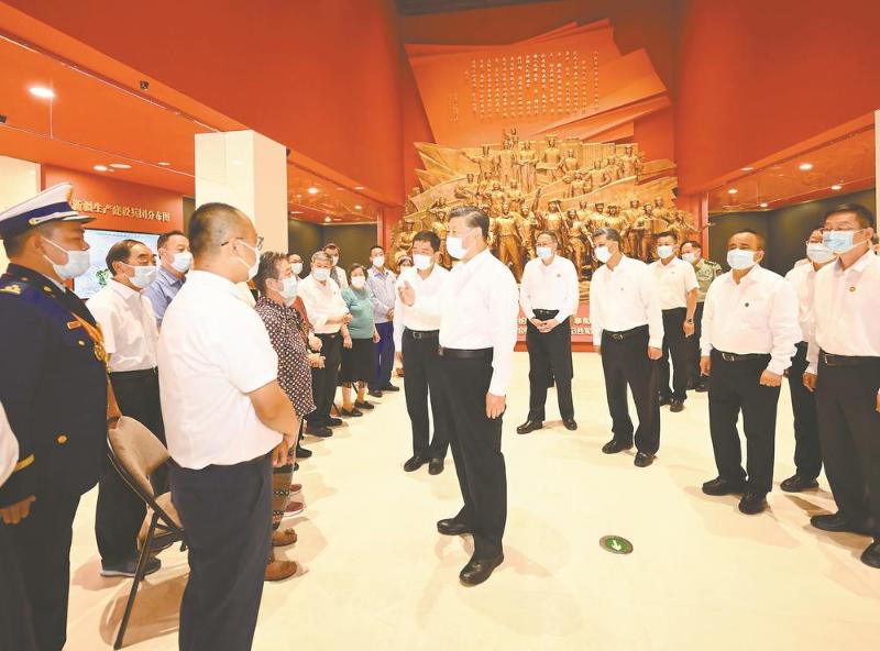 7月12日至15日,中共中央总书记、国家主席、中央军委主席习近平在新疆考察。这是13日下午,习近平在新疆生产建设兵团八师石河子市新疆兵团军垦博物馆,会见兵团老中青三代建设者代表。 新华社记者 李学仁 摄