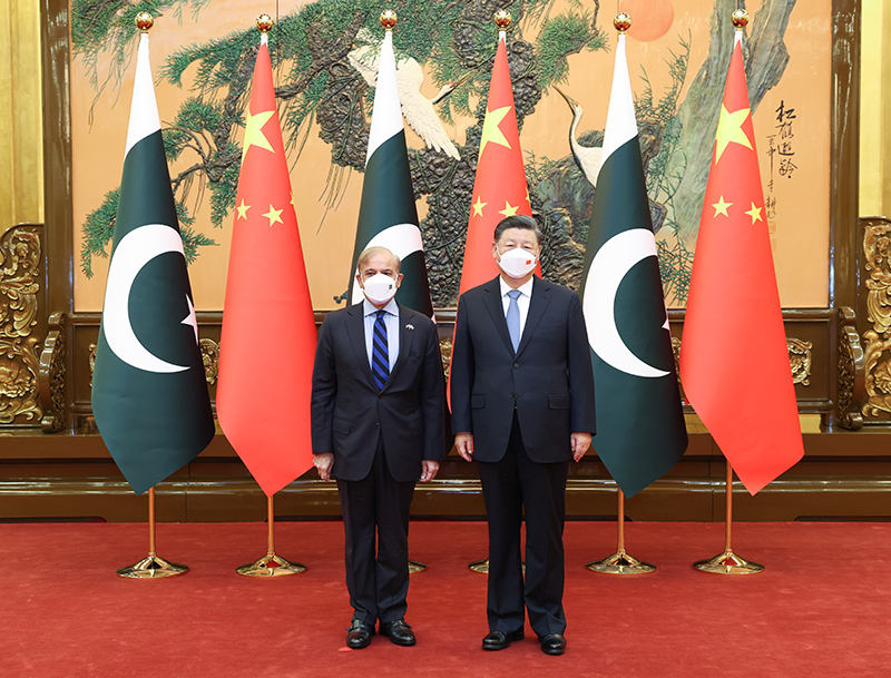 习近平介绍了中国共产党第二十次全国代表大会取得的重要成果。习近平指出,中国将继续坚持对外开放基本国策,不断以中国新发展为包括巴基斯坦在内的世界各国提供新机遇。中方愿同巴方深化发展战略对接。双方要用好中巴经济走廊联合合作委员会机制,以更高效率推进中巴经济走廊建设,将其打造成“一带一路”高质量发展示范性工程。要加快推进瓜达尔港配套基础设施建设,发挥港口对地区联通发展的辐射带动作用。双方要共同努力,为早日实施一号铁路干线升级改造项目和卡拉奇环城铁路项目创造条件。中方欢迎巴基斯坦扩大优质农产品对华出口,愿同巴方拓展数字经济、电子商务、光伏等新能源合作,扎实推进农业、科技、民生等领域合作,将继续为巴方稳定金融形势提供力所能及的支持。中方支持中国工业强省同巴方结对子推进产业合作,希望巴方提供良好营商环境。我高度牵挂在巴中国人的安全问题,希望巴方为赴巴基斯坦开展合作的中国机构和人员提供可靠安全环境。
