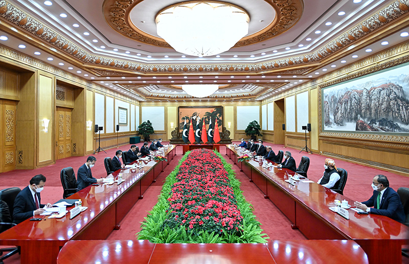 11月2日上午,国家主席习近平在北京人民大会堂会见来华进行正式访问的巴基斯坦总理夏巴兹。新华社记者 姚大伟 摄