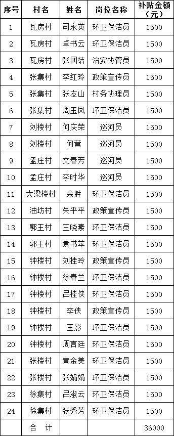 2022年一季度渠沟镇辅助性就业岗位补贴花名册