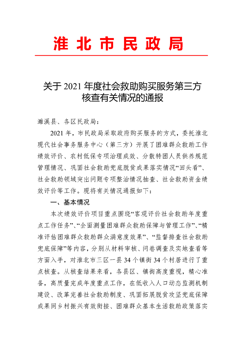 2021年度社会救助购买服务第三方核查有关情况的通报