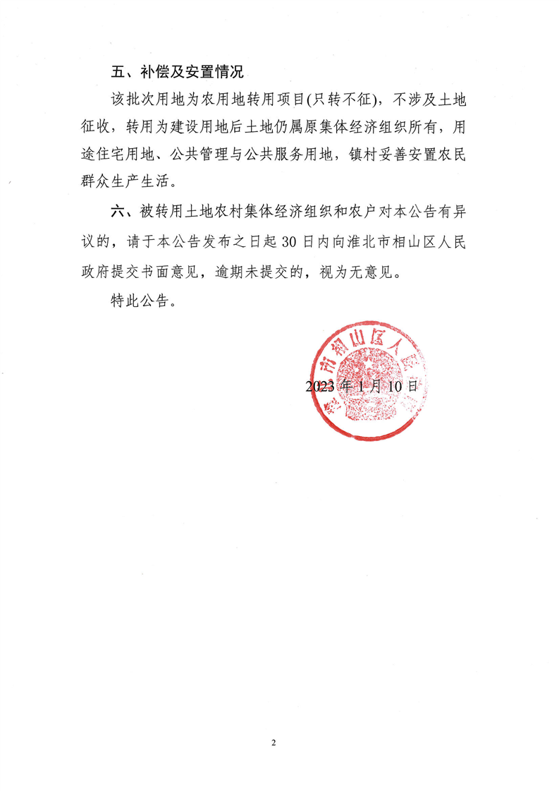 淮北市相山区2022年第1批次村庄建设用地转用土地公告