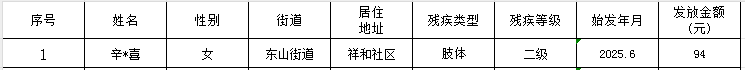 东山街道2025年6月重度残疾人护理新增补贴发放情况