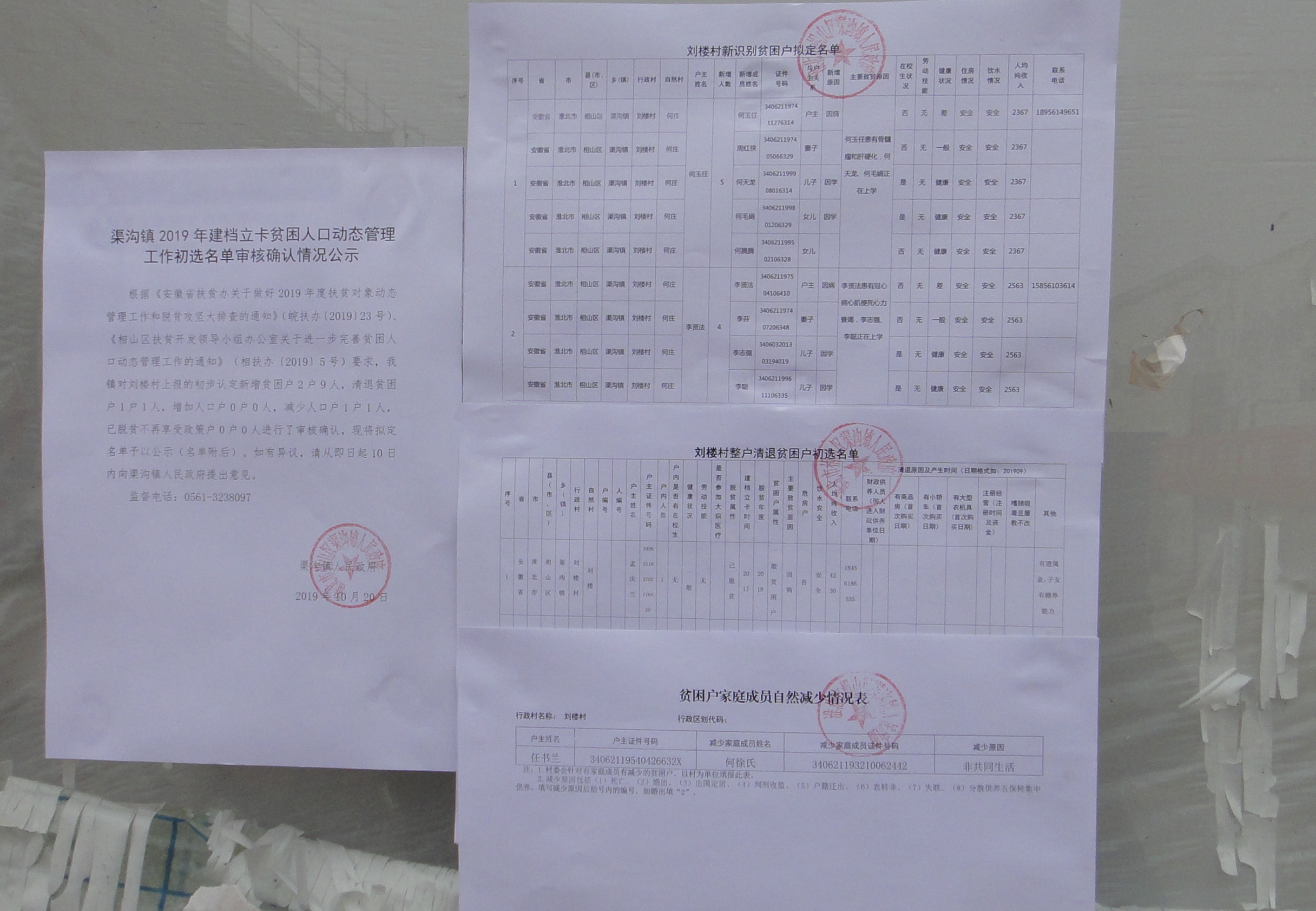 【镇街审查公示】渠沟镇2019建档立卡贫困人口动态管理名单公示