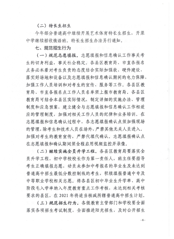 关于2020年普通高中招生工作的通知(内含政策性加分内容)