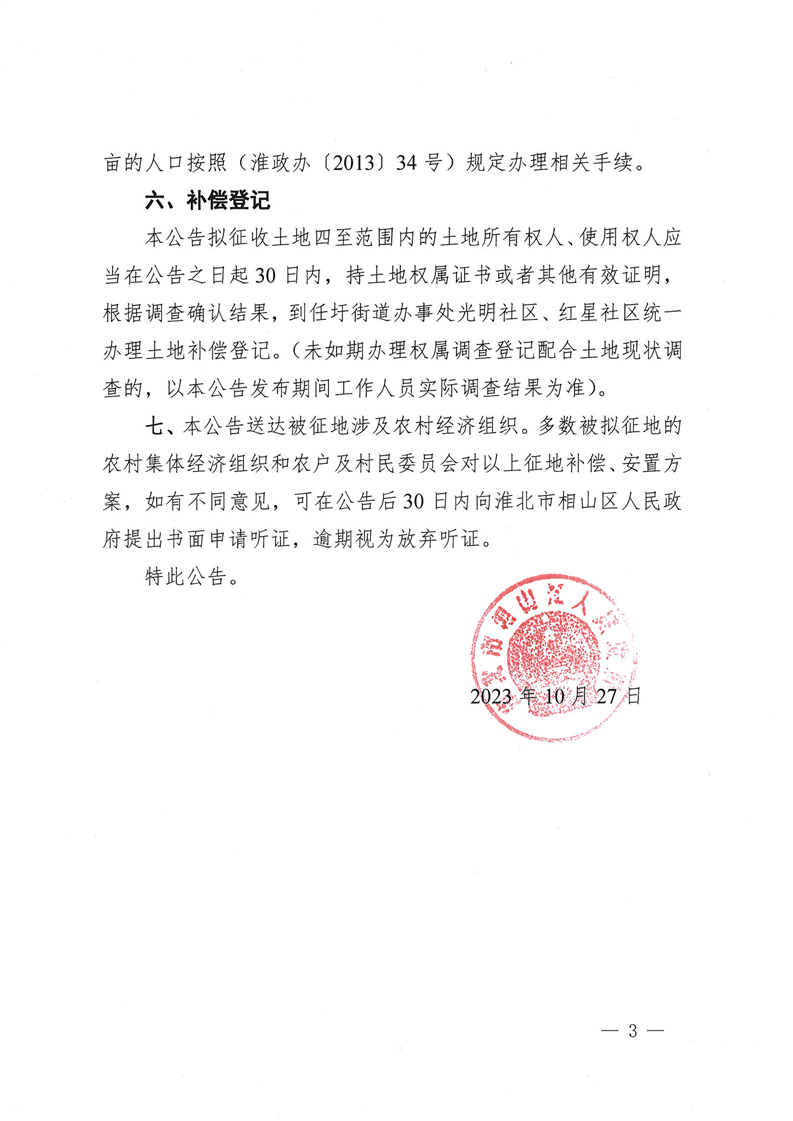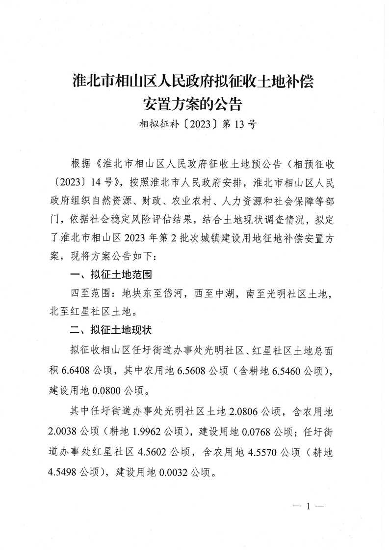 淮北市相山区2023年第2批次城镇建设用地征收土地补偿安置方案公告