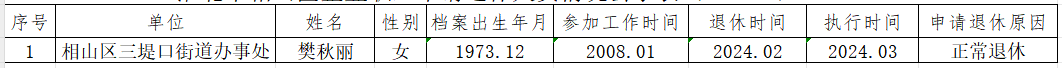 根据《安徽省参加企业基本养老保险人员审批管理规定》(劳社〔2008〕45号)要求,现对2023年2月份申请退休人员基本情况予以公示,欢迎广大干部群众监督。