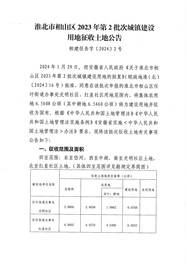 淮北市相山区2023年第2批次城镇建设用地征收土地公告