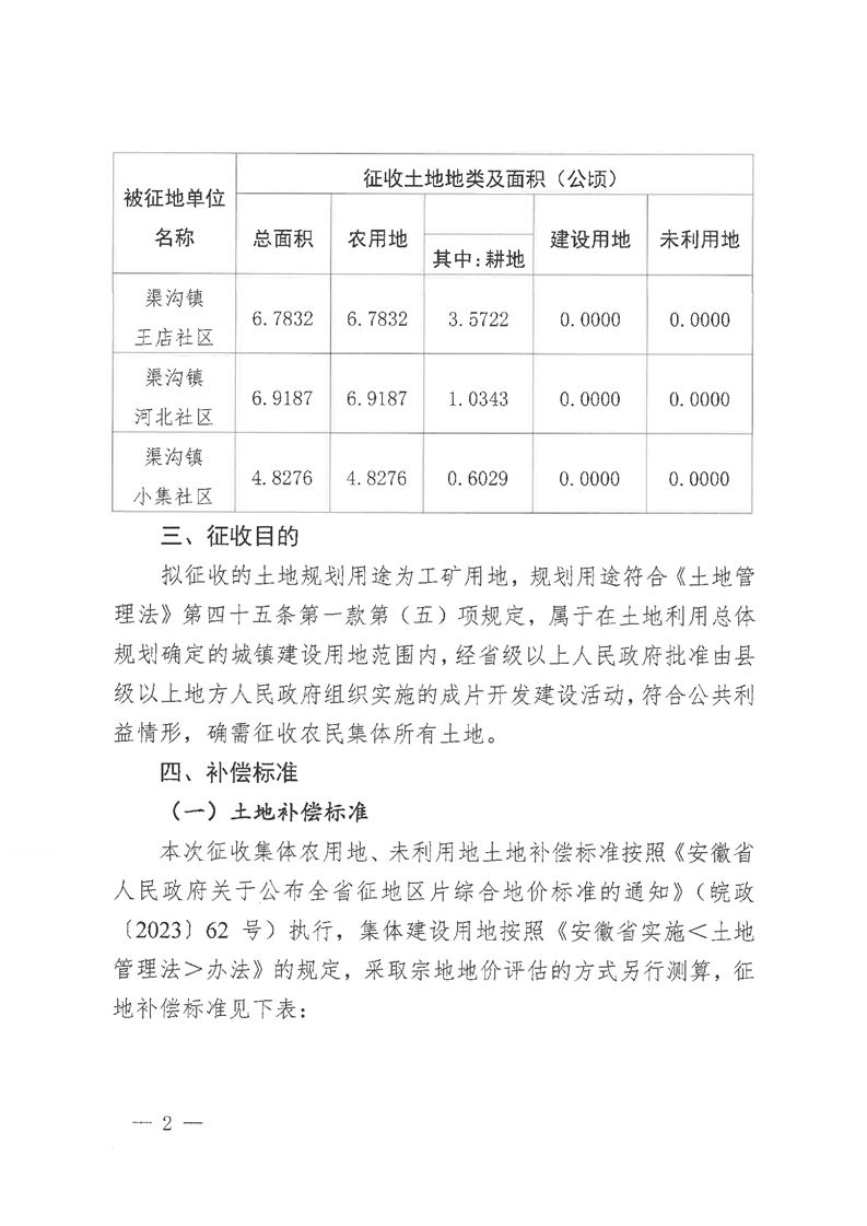 淮北市2024年第4批次城市建设用地征地补偿安置方案